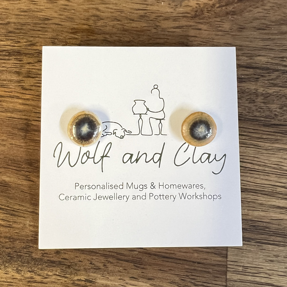 These ceramic stud earrings are light brown/Earthy in colour. They are fired multiple times in a kiln, with temperatures up to 1250 Celsius degrees. This gives the them a stone like appearance as well as other qualities making each pair unique. (colour does not always match exactly to the pictured example due to subtle firing/clay differences)